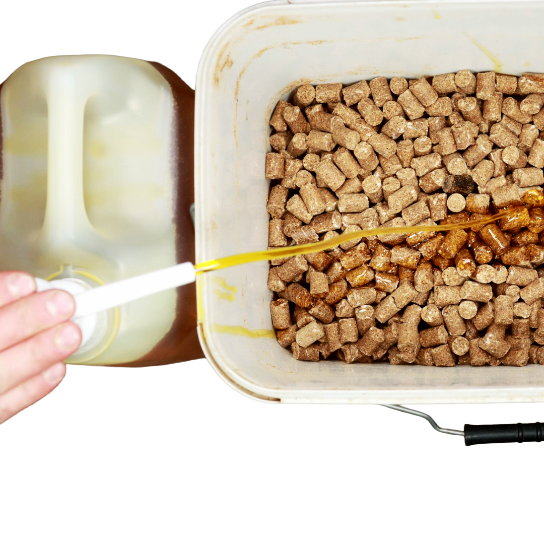 For best results, feeds should be treated 6–24 hours before use. This allows sufficient time for the oil to fully absorb into the pellets, while minimising loss of the garlic compounds that make Natrepel effective.